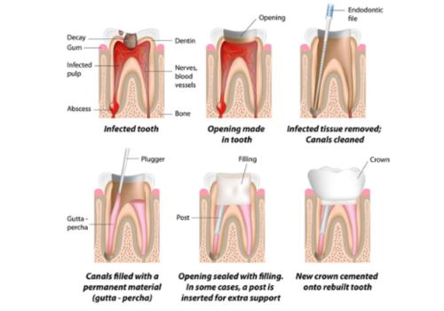 The procedure starts by removing the bacteria from the pulp, clean and disinfect thoroughly followed by sealing the pulp and crown/ cap is placed to prevent from re-infection.